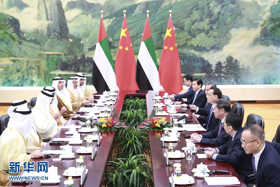 李克強表示,阿聯酋是中國在中東、海灣方向的重要合作伙伴。建交35年來,中阿關系與合作穩步向前發展,雙方在涉及彼此核心利益和重大關切問題上相互尊重和支持。習近平主席去年成功訪問阿聯酋,兩國關系提升為全面戰略伙伴關系。中方愿同阿方繼續鞏固政治互信,加強發展戰略對接,深化全方位合作,更好造福兩國和兩國人民。
