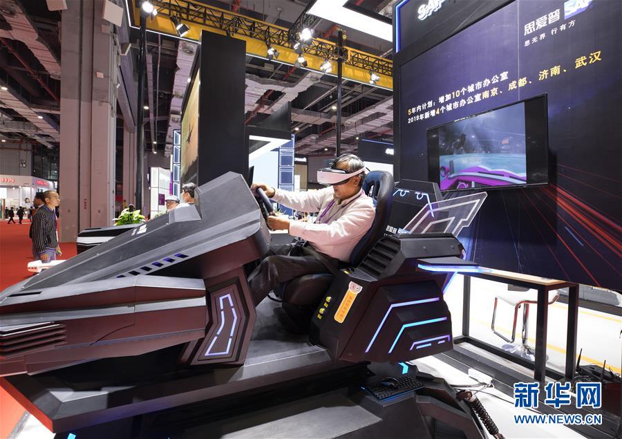 11月5日,一名參觀者在第二屆進博會科技生活展區體驗虛擬現實賽車。 當日,第二屆中國國際進口博覽會在上海國家會展中心開幕。 新華社記者 金立旺 攝