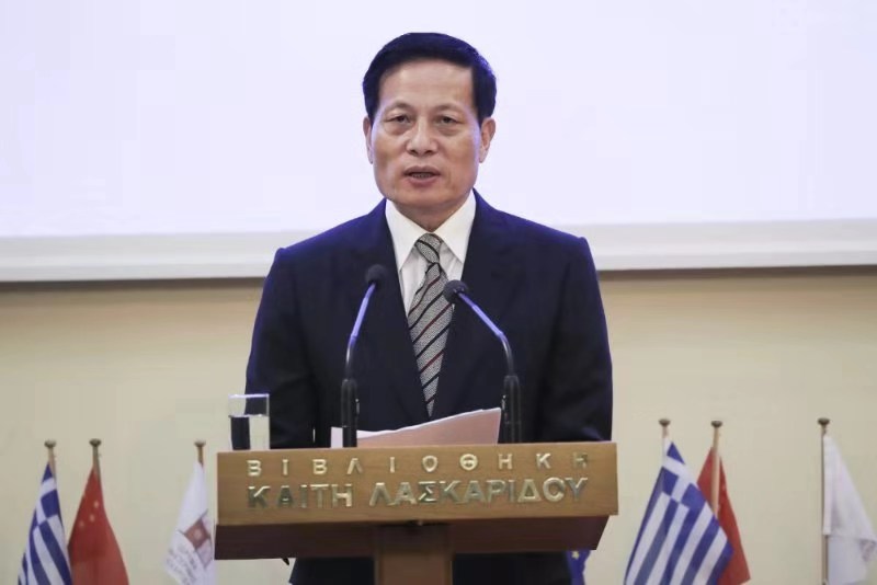中國駐希臘大使章啟月在研討會上致辭。中國日報記者 匡林華 攝