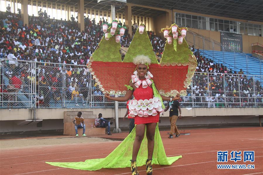 12月22日,在利比里亞首都蒙羅維亞,一名演員在啤酒節現場表演。 新華社記者 郭駿 攝