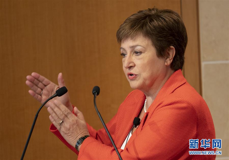 1月17日,國際貨幣基金組織(IMF)總裁格奧爾基耶娃在美國華盛頓的彼得森國際經濟研究所發表演說。新華社記者 劉杰 攝