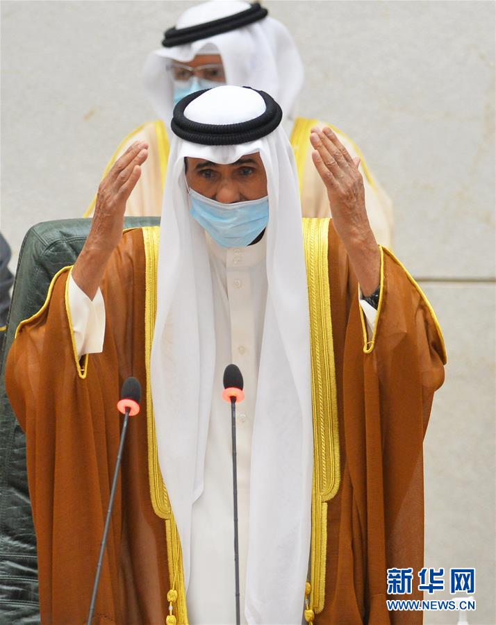 9月30日,在科威特首都科威特城,科威特新任埃米爾納瓦夫(前)在國民議會宣誓就職。 新華社發