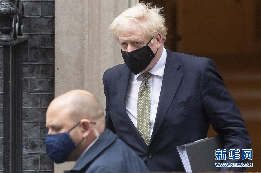 10月12日,在英國倫敦,英國首相鮑里斯·約翰遜(右)離開首相府前往議會。新華社發(雷伊·唐攝)