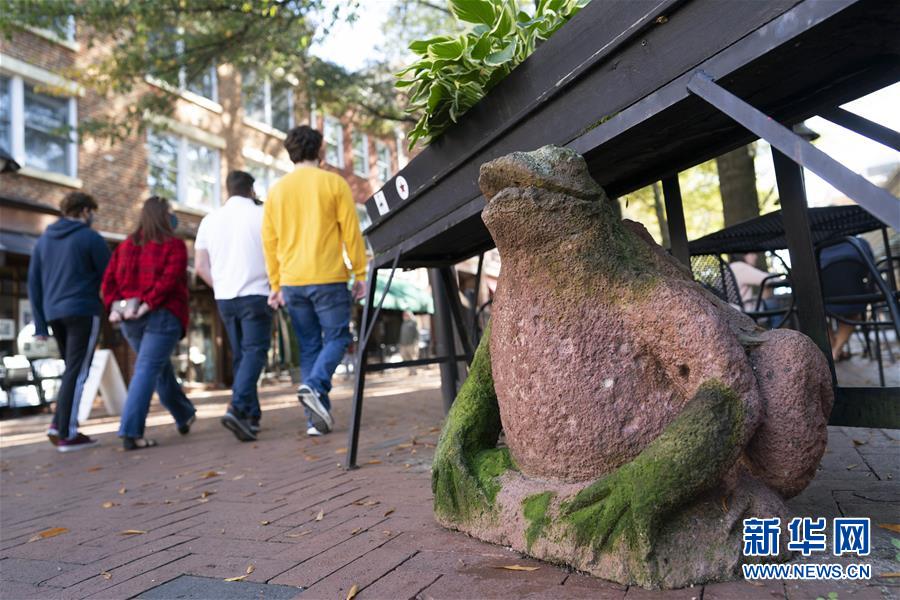 10月20日,在美國弗吉尼亞州夏洛茨維爾,人們在曾經發生暴力事件的地點附近經過。 新華社記者 劉杰 攝