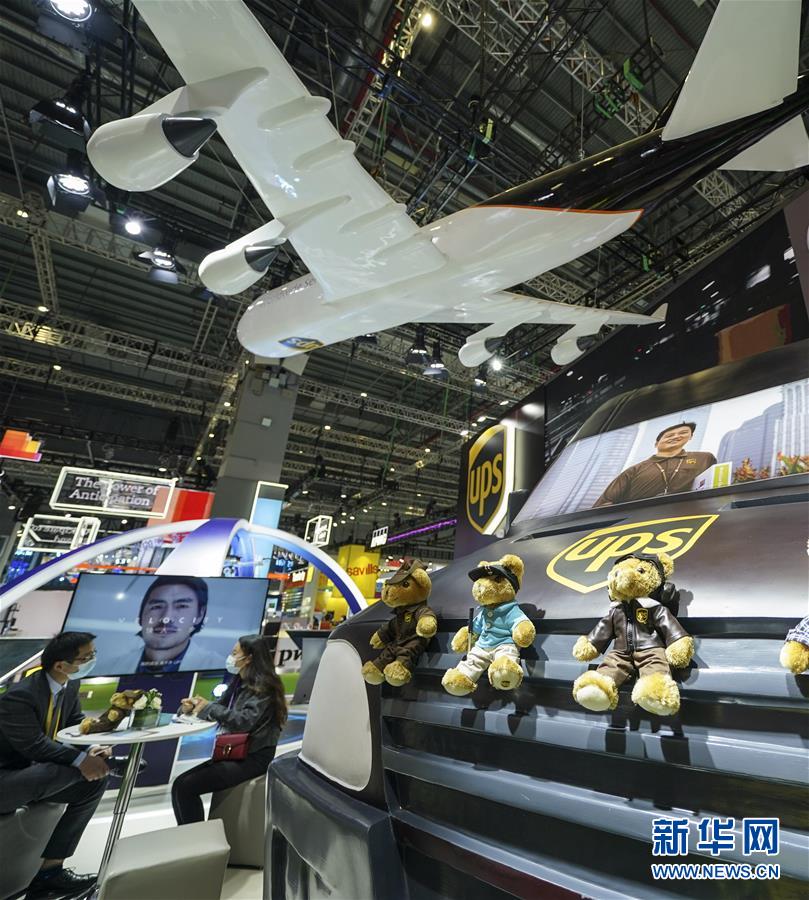 11月5日拍攝的第三屆進博會服務貿易展區UPS展臺。新華社記者 張豪夫 攝