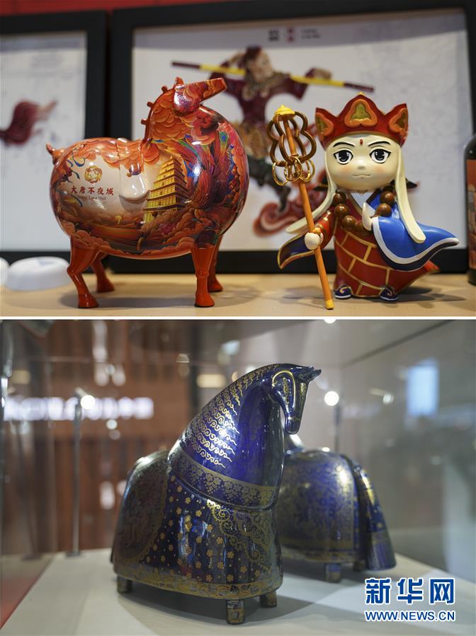拼版照片:上圖為11月9日在進博會陜西展臺拍攝的文創產品馬造型擺件;下圖為11月9日在進博會消費品展區拍攝的伊朗鎏金瓷馬。 第三屆中國國際進口博覽會為全球貿易供需雙方搭起溝通的“橋梁”,這一貿易盛會同時也成為文化交流平臺,不同文化在這里“邂逅”。 新華社記者 張豪夫 攝