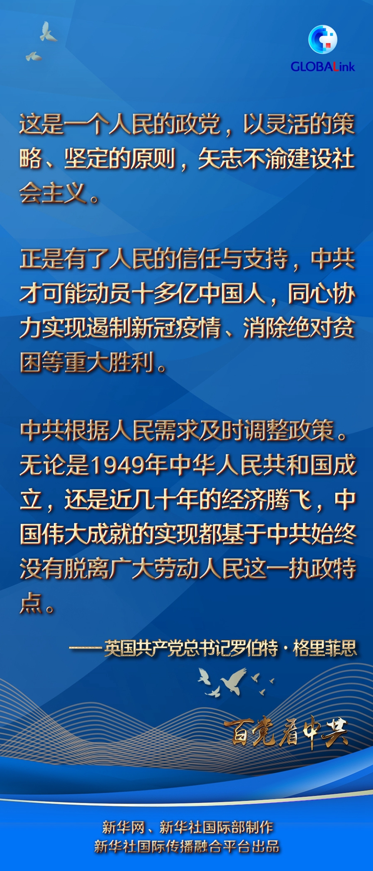 格里菲思日前接受新華社記者視頻連線專訪時表示,對于中國共產黨和中國人民來說,過去一百年堪稱翻天覆地、意義重大。中共之所以能成功帶領中國取得輝煌成就,“核心秘訣”是始終保持和廣大人民的緊密聯系,時刻不忘為人民服務的初心,得到了人民的高度信任和廣泛支持。