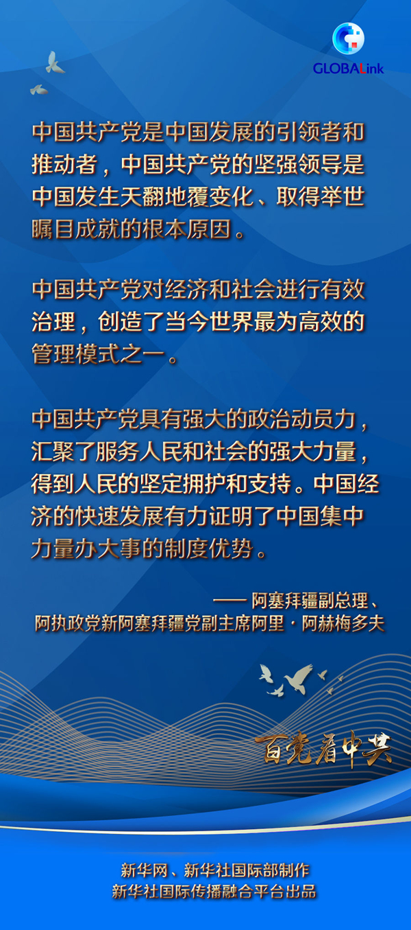 新華社第比利斯7月12日電 阿塞拜疆副總理、阿執政黨新阿塞拜疆黨副主席阿里·阿赫梅多夫日前在第比利斯接受新華社記者專訪時說,中國共產黨是中國發展的引領者和推動者,中國共產黨的堅強領導是中國發生天翻地覆變化、取得舉世矚目成就的根本原因。