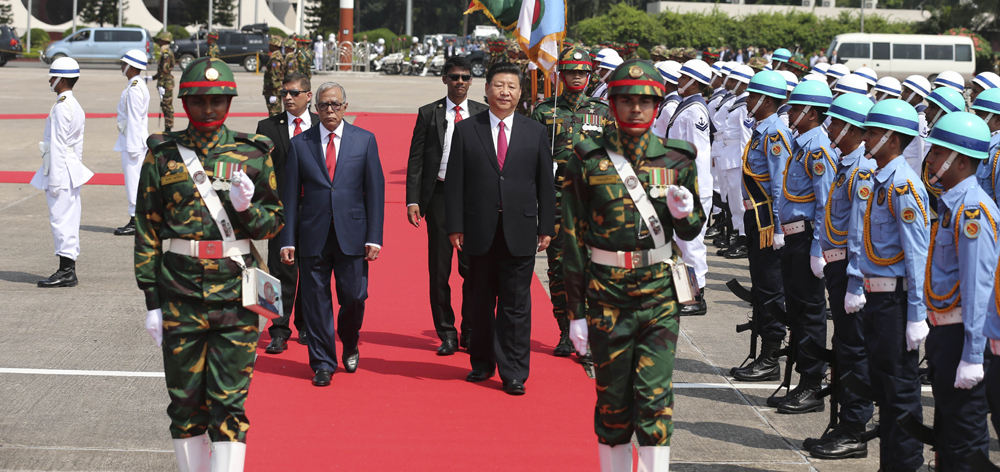 習近平抵達達卡開始對孟加拉人民共和國進行國事訪問